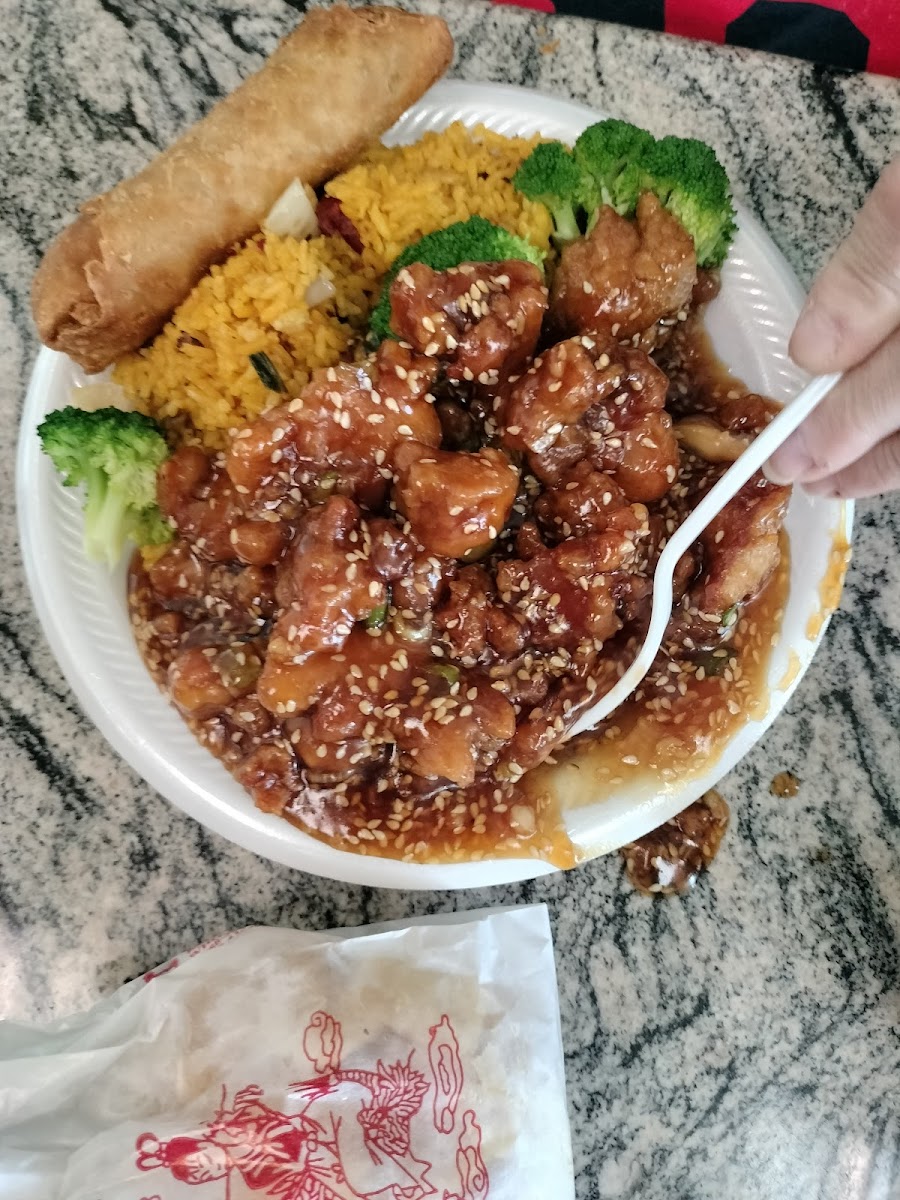 Good food fast and great service,we enjoyed general tacos chicken And sesame chicken both came with egg roll and fried rice also had there crab rangoon and wonton soup all very tasty, and came out super quick and hot . that being said it's mostly a take out with a few tables and no A/C. but great takeout!!!